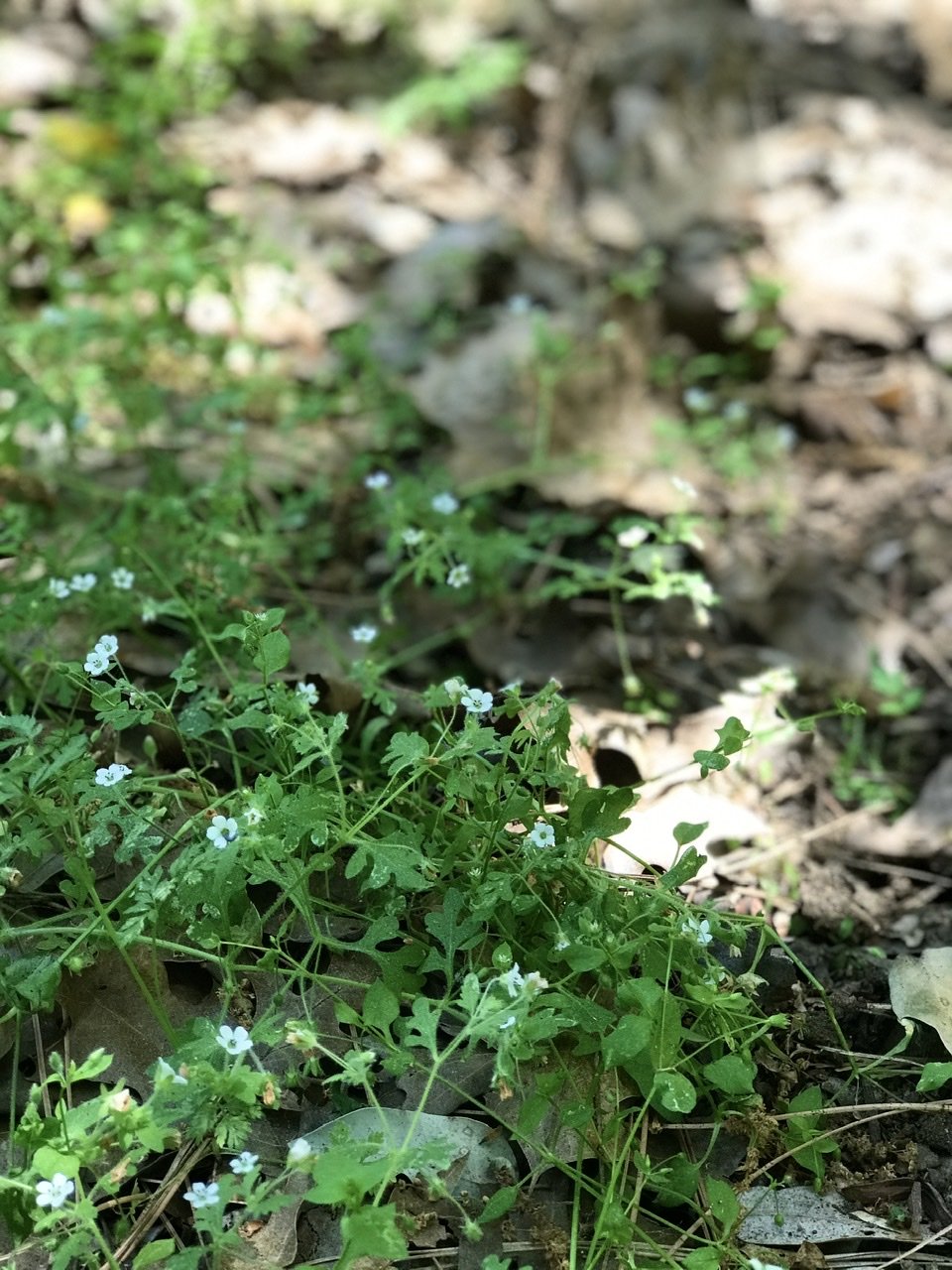 The path is fallen leaves framed by a blanket of tender innocent blossoms