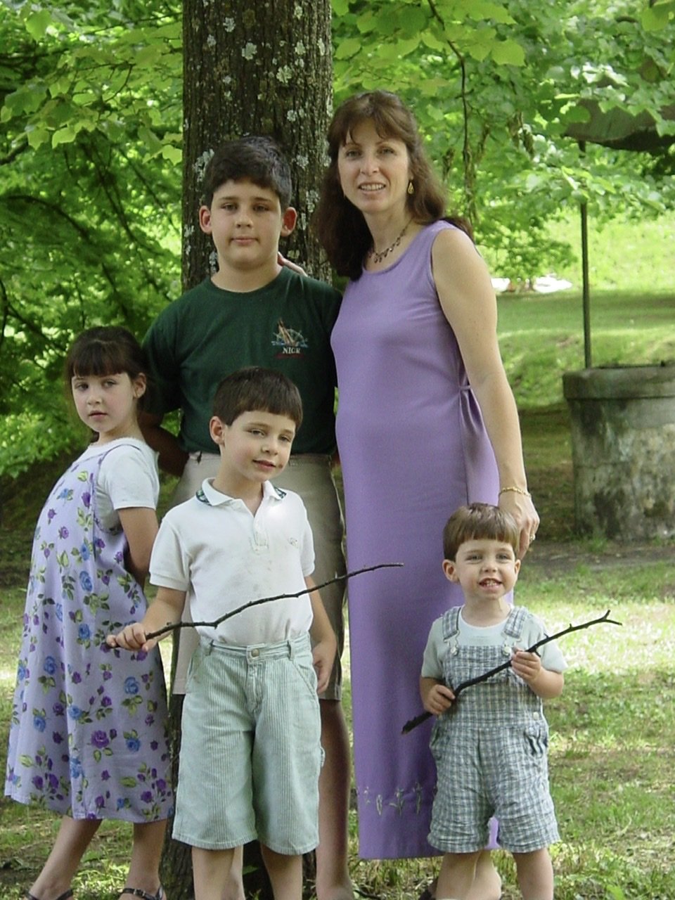 I captured only a few images in 03’, what I found I most wanted to remember: us at the top of the garden, surrounded by peonies, another under the trees where the children played that day, and another next to the fountains.