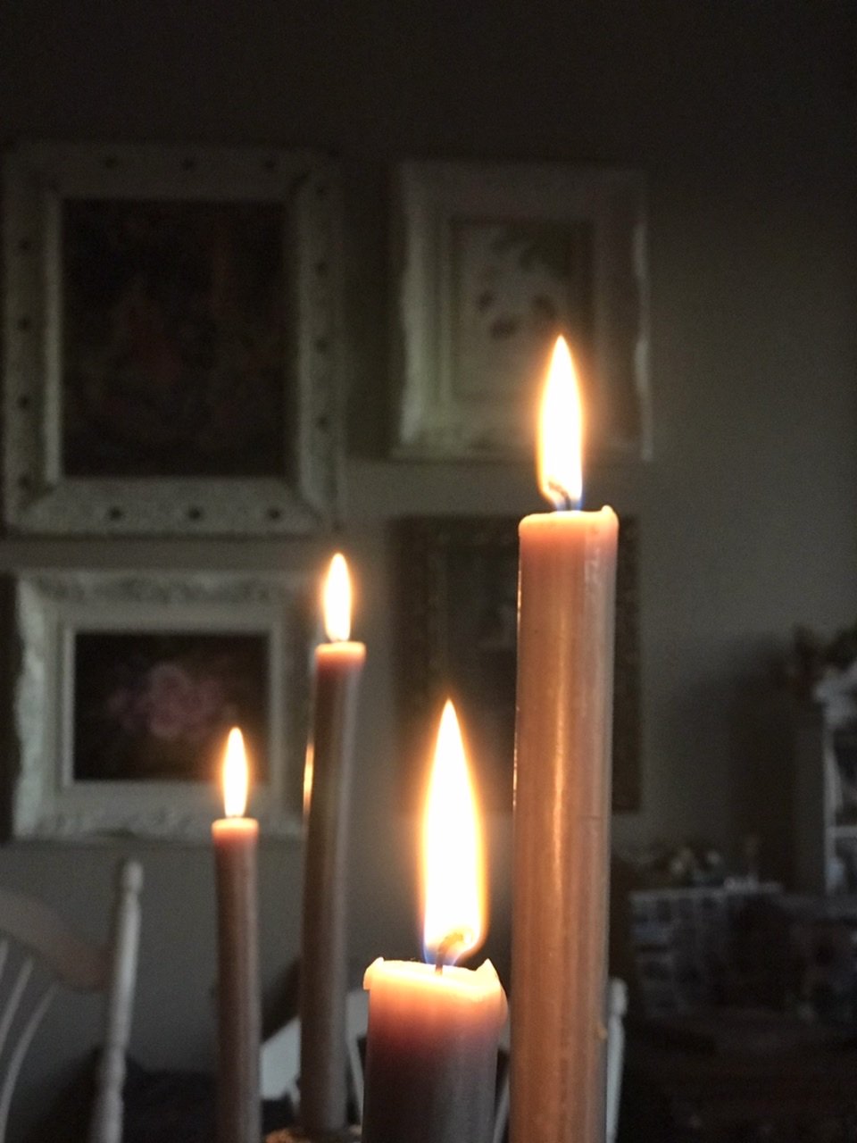 I placed his glasses next to his Bible, I needed something he wore there. Something to see the unseen. Last, I placed a candle in the cup we used for communion and the flame burned beside me through the meal.
