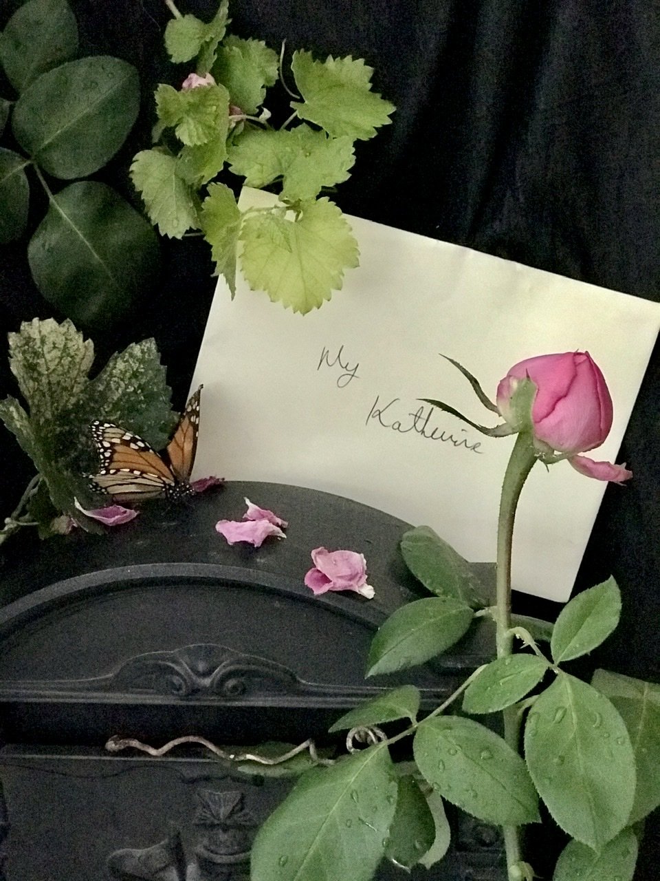 Misty clouds engulfed our mountain today , slowly swallowing up the view. I stepped outside to breath in the fresh watery air, the first winter rain falling so gently from the sky. As if I am gazing in a mirror, I take in the very last rose reaching up, it’s brightness clenched tight as it’s surrounded by the gray of this world.
