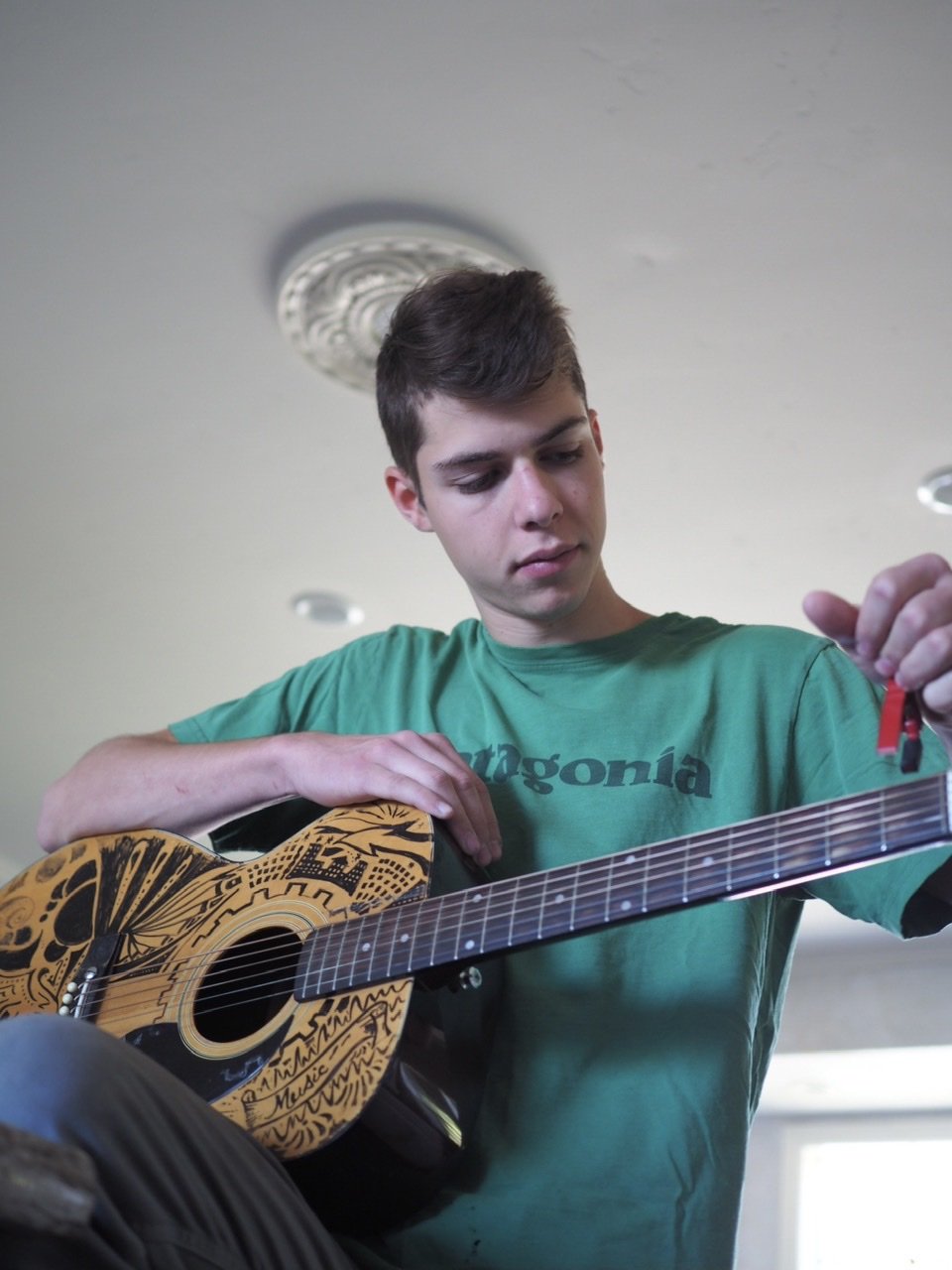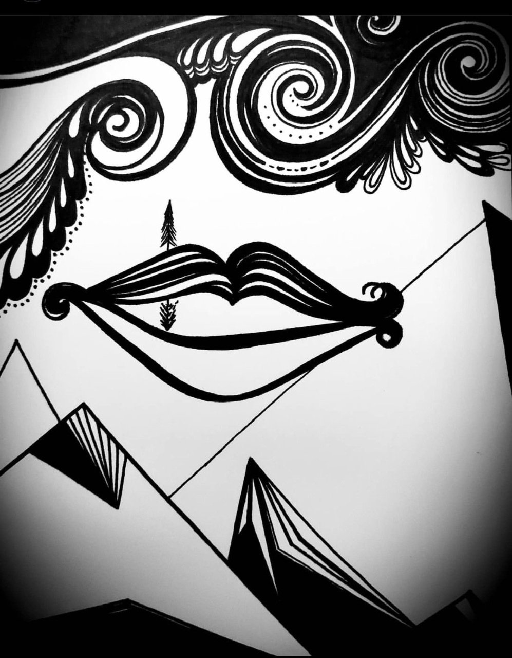 The image appears to be a beautiful mouth that holds mysterious reflections, I follow the lines and swirls, similar to patterns I decorated our sons’ guitar with years ago.