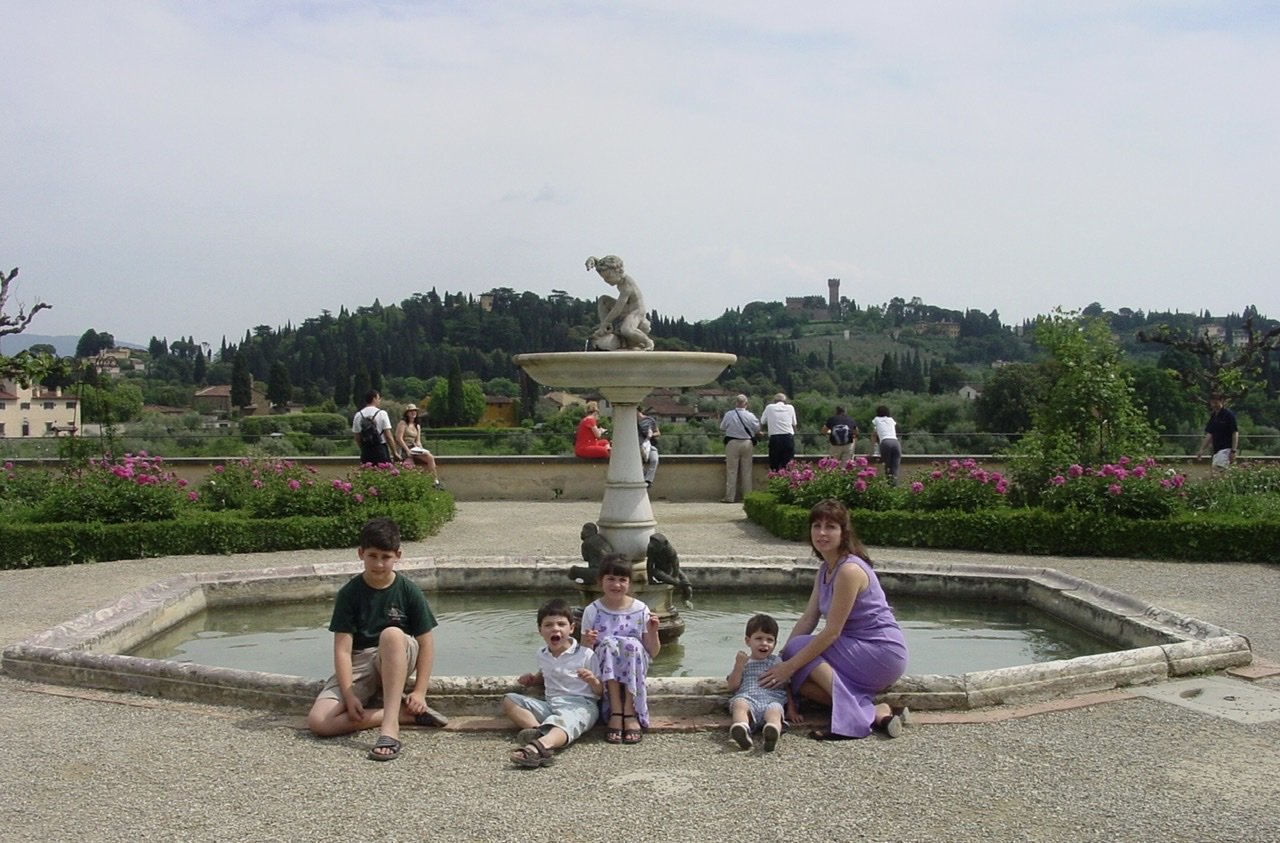 In 2003 we were in the Boboli Gardens at the Pitti Palace, a place we had visited in May of 96’. We found the whole day could be spent meandering through the various garden rooms, climbing outdoor stairways, taking in the statues, fountains, flowers and fruits.