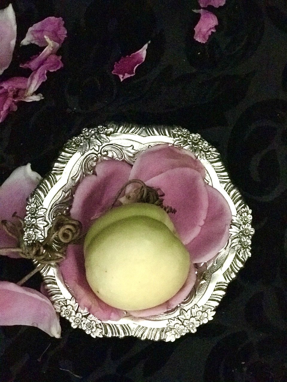 I came home, the pitcher of water holding the broken branch sat in the light. My grateful heart in wonder at doing “something special”, at how God’s ways are not our ways. I plucked a piece of fruit from the branch that fell last week, miraculously, it had ripened.