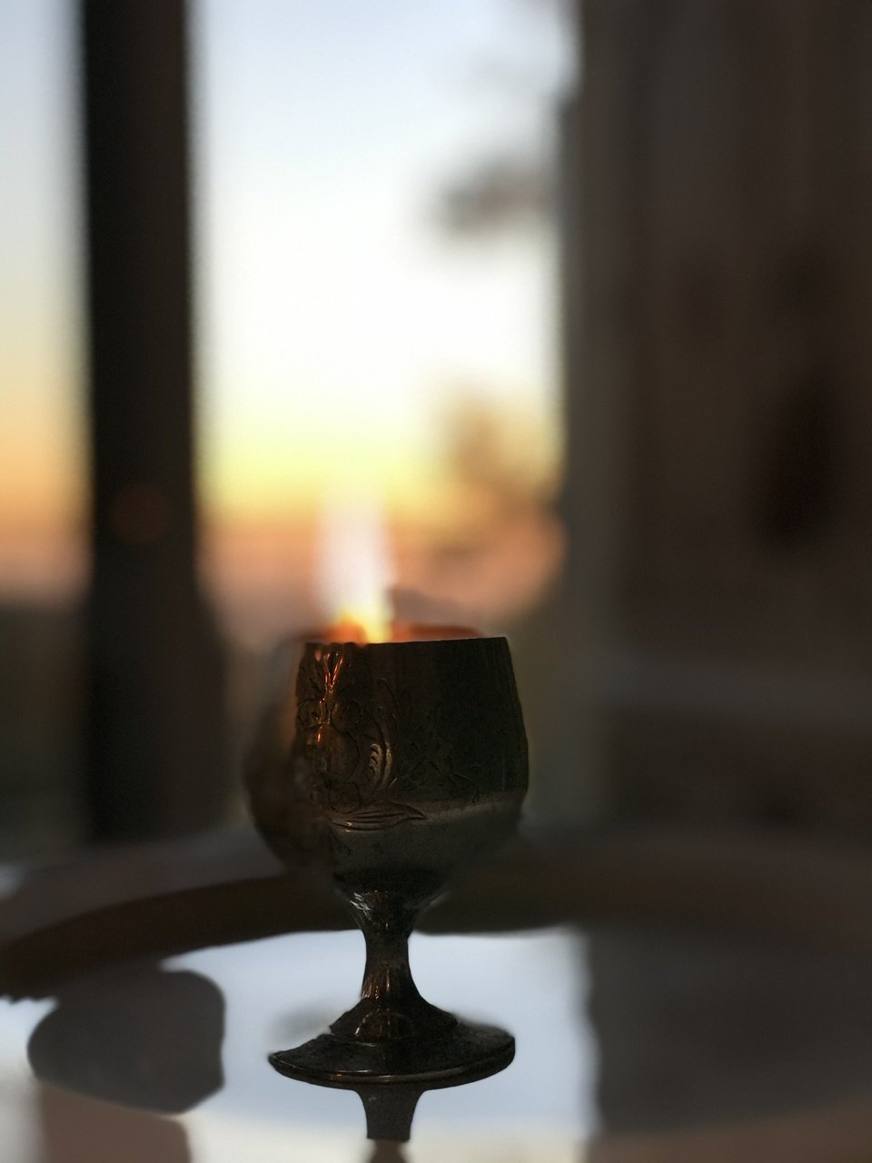 I placed his glasses next to his Bible, I needed something he wore there. Something to see the unseen. Last, I placed a candle in the cup we used for communion and the flame burned beside me through the meal.