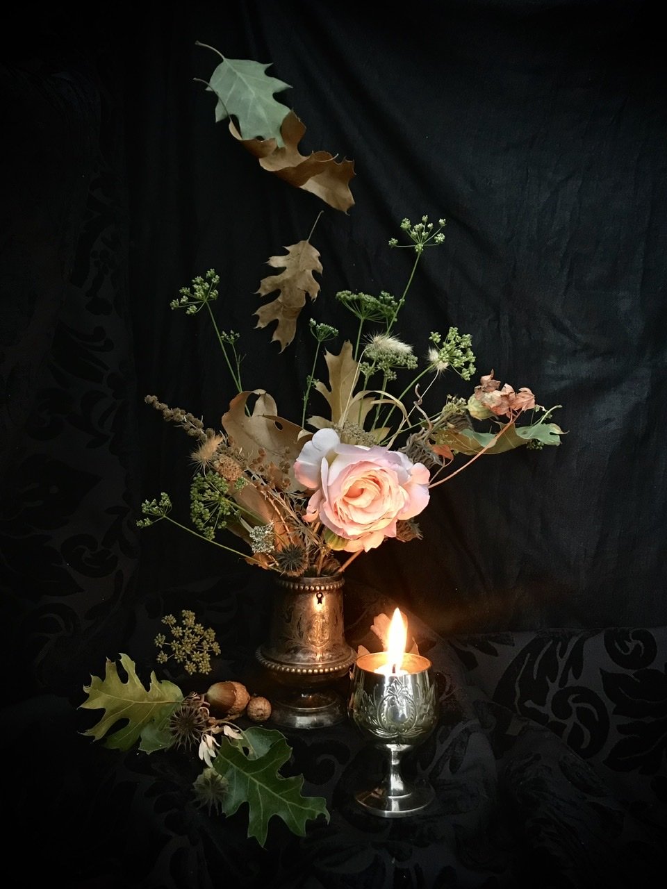 I gathered up Autumn’s gifts this afternoon, and one fragrant rose. Power has been shut off for miles in an attempt to minimize potential fires.