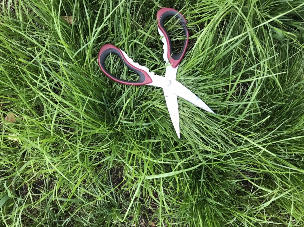 The Vineyard stairways new grown grass looks like wild morning hair, in need of a haircut. So I brought out a pair of scissors.